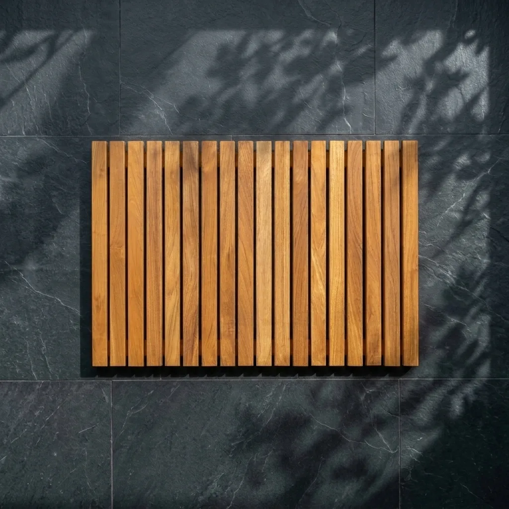 SHAVA 50x80cm ahşap banyo kaydırmazı standart ölçüleri bir kenara bırakarak ayağınızın altındaki masif dokuyu maksimize eder. Duşta, duştan çıktığınızda veya lavabo önünde hareket ederken ayağınızın her an Tanzanya’nın kalbinden gelen sıcak Teak lifleriyle temas etmesi zihninizi dinginleştiren dokunsal bir lükstür.