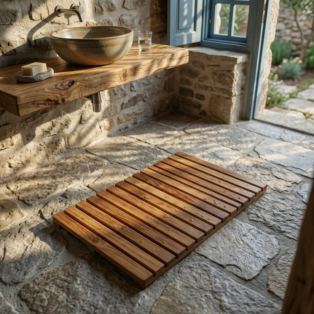 Kaydırmaz Ahşap Banyo Paspası 40×60 – Masif Teak