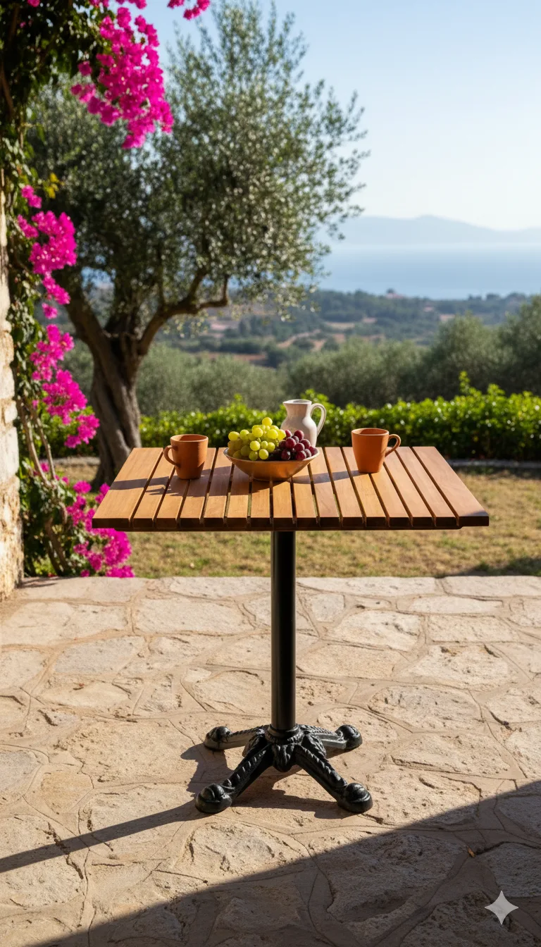 Bazı mobilyalar sadece yer kaplar. Bazıları ise mekanın ruhunu yaratır. Afro Teak Bahçe Masası, ikinci kategori için tasarlandı. Paris kafelerinin zamansız ruhunu, Akdeniz verandasının sıcaklığıyla ve modern bir mekanın minimalist çizgisiyle birleştiren bu masa, üzerine konan her objeyi, etrafında oturan her insanı özel hissettirir.