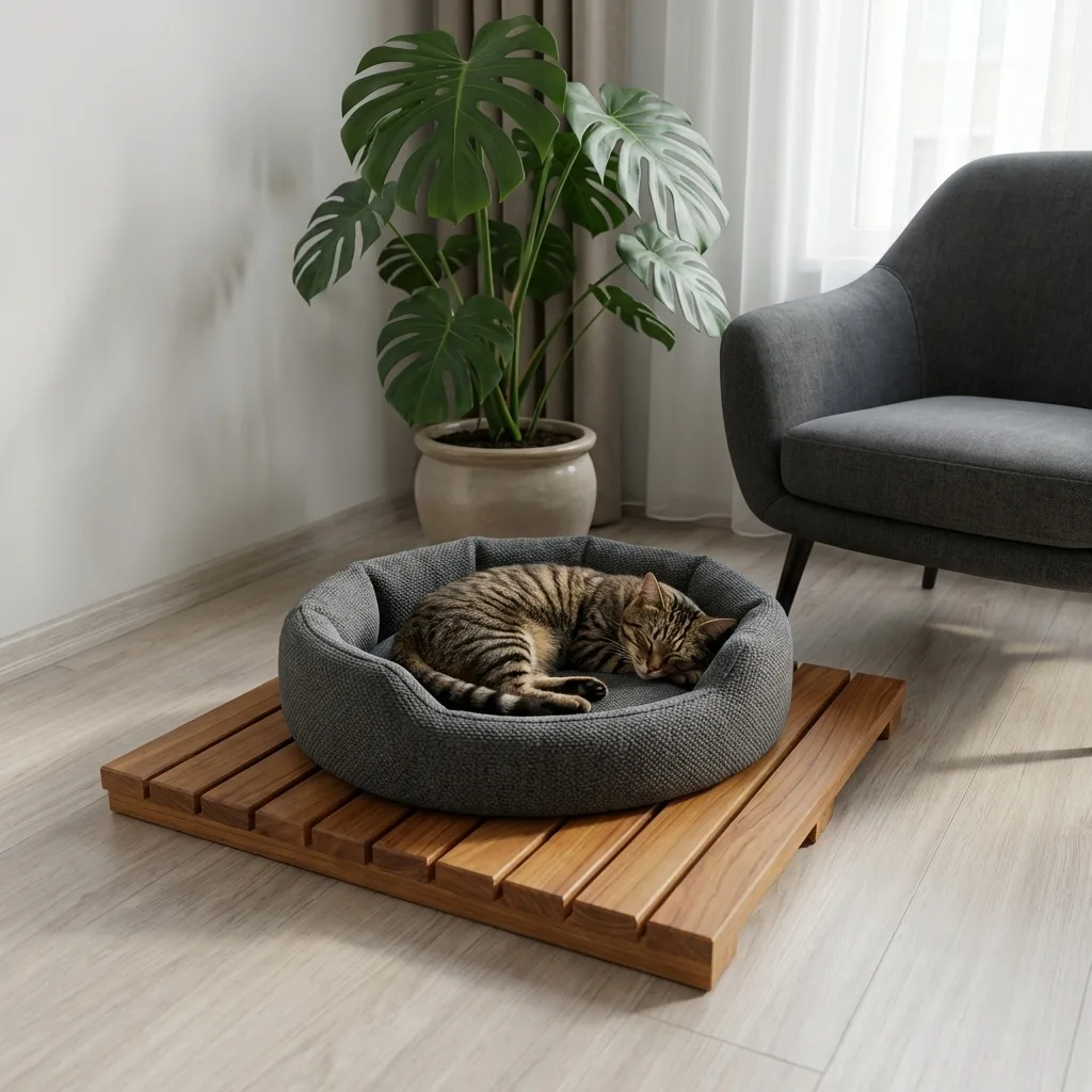 Kedi Yatağı Bazası – Masif Teak Hijyenik Yatak Altlığı