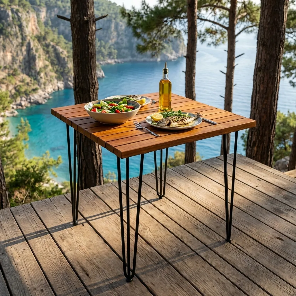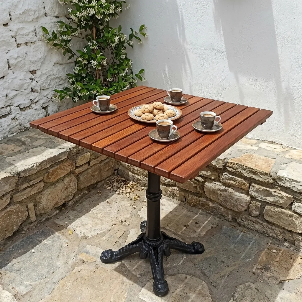 Kafe ve restoranlarda mobilya masrafı dayanıklılıkla dengelenir. KUTANA 70×70 her yıl zımpara ve vernik istemeyen yapısıyla operasyonel maliyetlerinizi düşürür. Izgaralı yüzey tasarımı dış mekan servis alanlarında yağmur sonrası dakikalar içinde kuruyarak masayı tekrar servise hazır hale getirir.